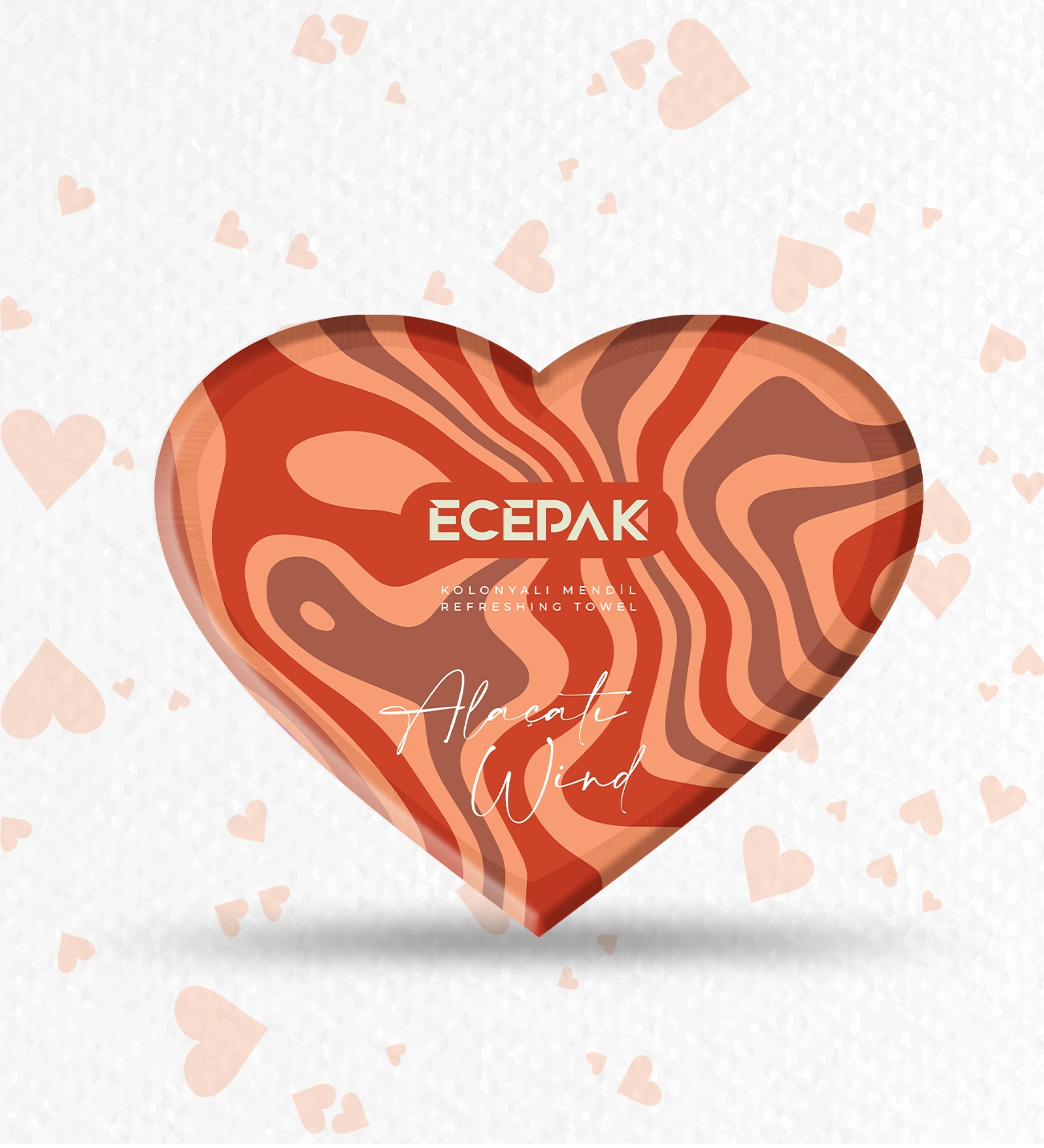 ECEPAK Alaçatı Rüzgarı kalpli ıslak mendiller, modern görünümü ambalaj tasarımı, modern görünümü ve güvenilir içeriğiyle hijyen ihtiyaçlarına pratik ve estetik bir çözüm sunar. Tek kullanımlık yapısı sayesinde her ortamda hızlı ve etkili temizlik sağlar.