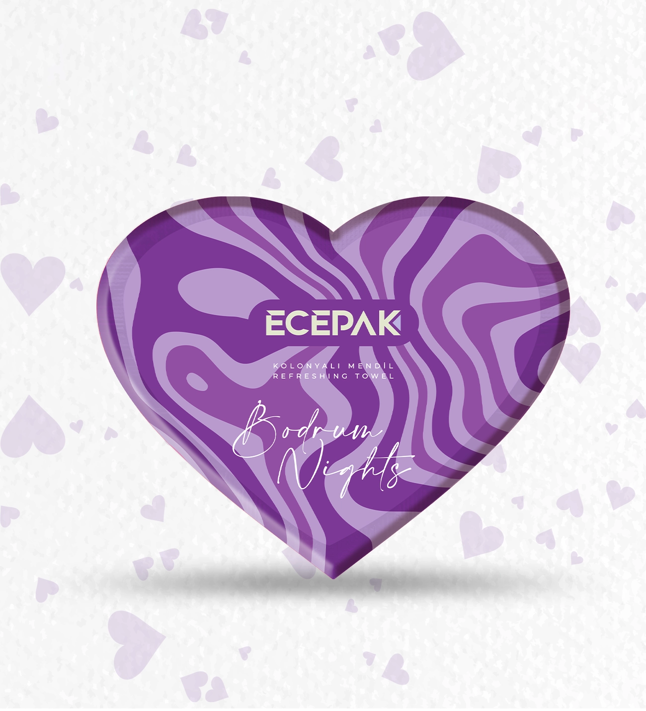ECEPAK Bodrum Geceleri kalpli ıslak mendiller, modern görünümü ambalaj tasarımı, modern görünümü ve güvenilir içeriğiyle hijyen ihtiyaçlarına pratik ve estetik bir çözüm sunar. Tek kullanımlık yapısı sayesinde her ortamda hızlı ve etkili temizlik sağlar.